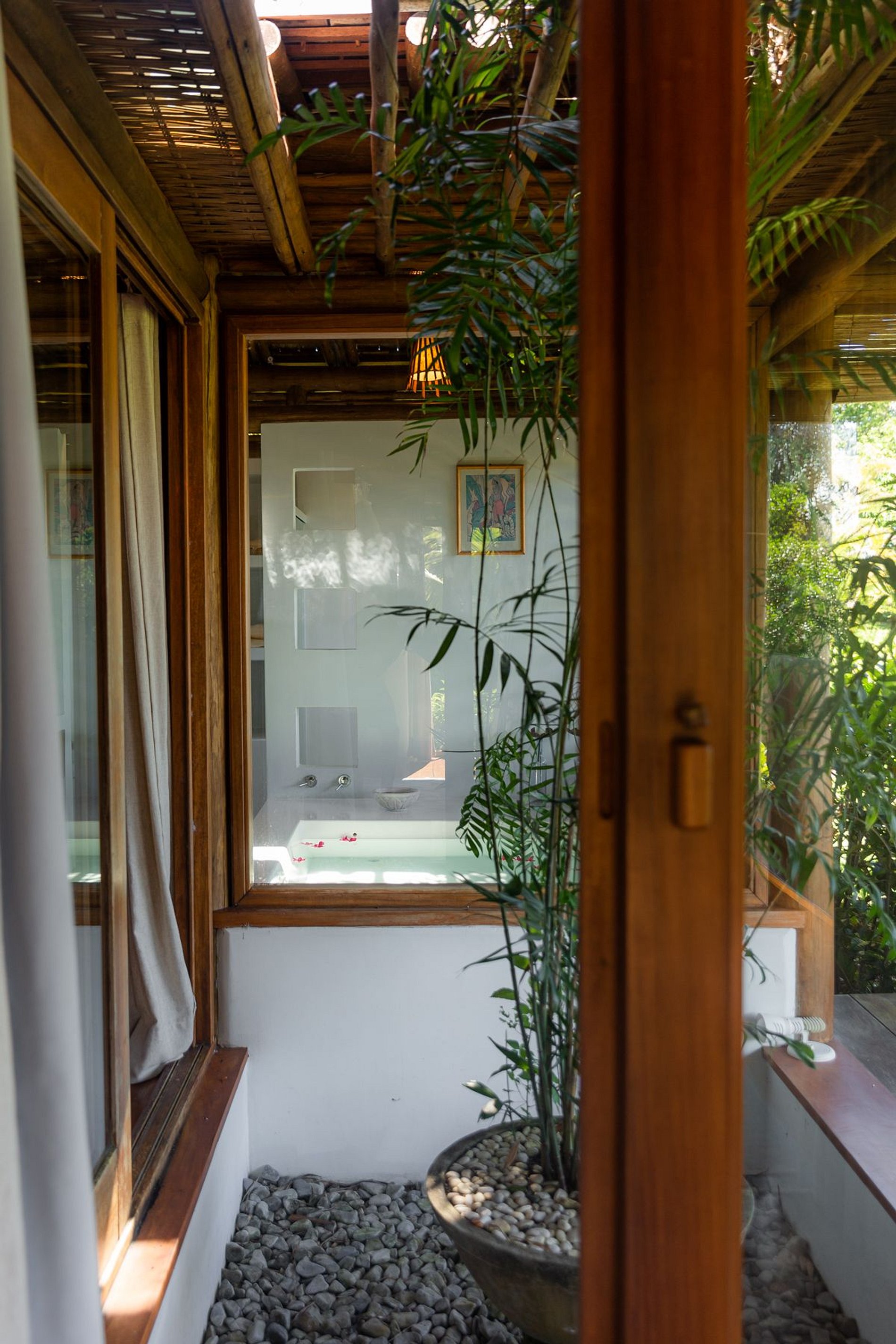 Projeto arquitetônico com área de 76 m2, rústico e elegante, a conexão com a natureza transforma a suíte em um lugar de refúgio e sossego. Integrado pela exuberância dos jardins tropicais, pela mata nativa e pela beleza do mar, o Bungalow Jasmin oferece, suíte casal, banheira, closet, TV, ar condicionado, jardim de inverno, muito charme e conforto, deck com uma vista fantástica para as praias do Satú e Corumbau.