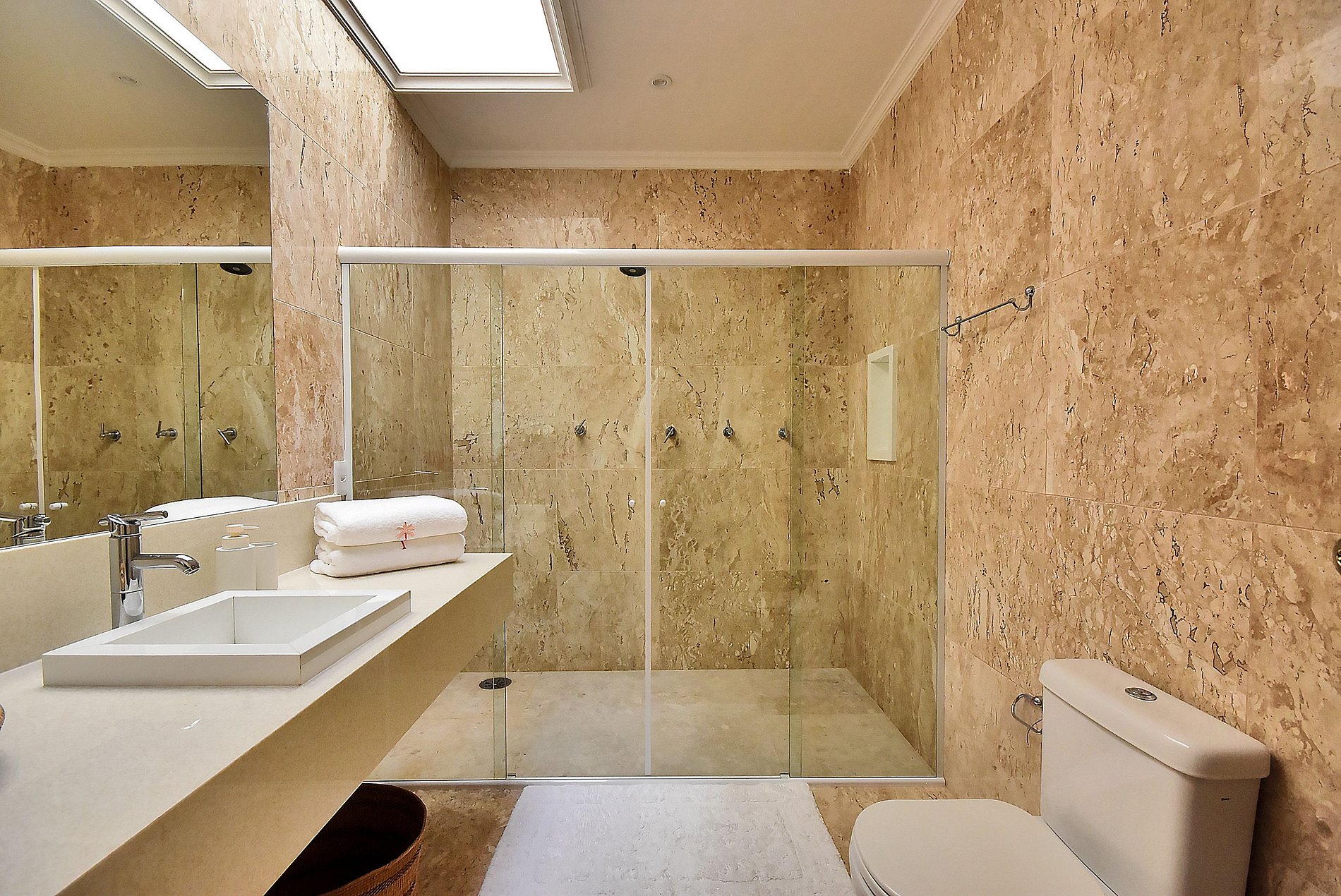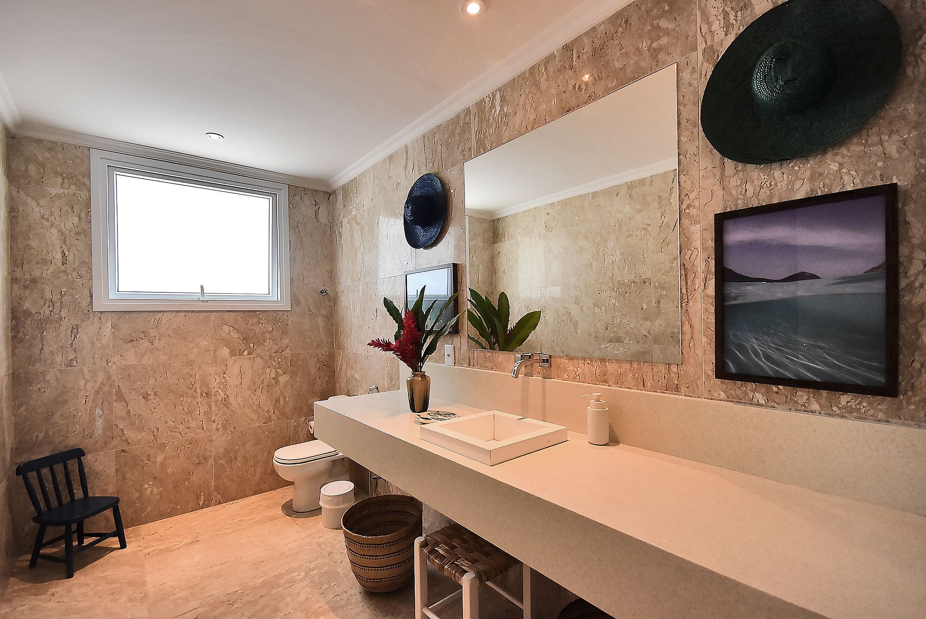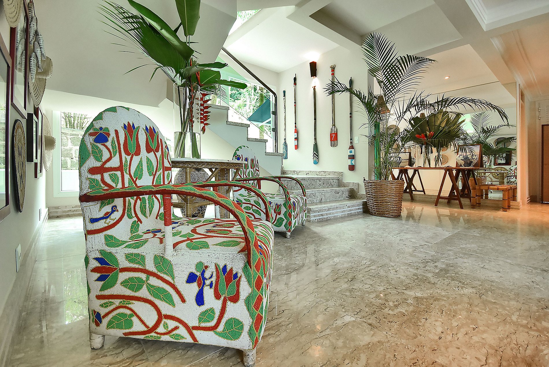 Casa em condomínio fechado com praia particular em Angra dos Reis, Rio de Janeiro. Possui seis suítes, sala de estar, sala de jantar, sala de TV, piscina com vista para o mar, churrasqueira, sauna úmida e heliponto.