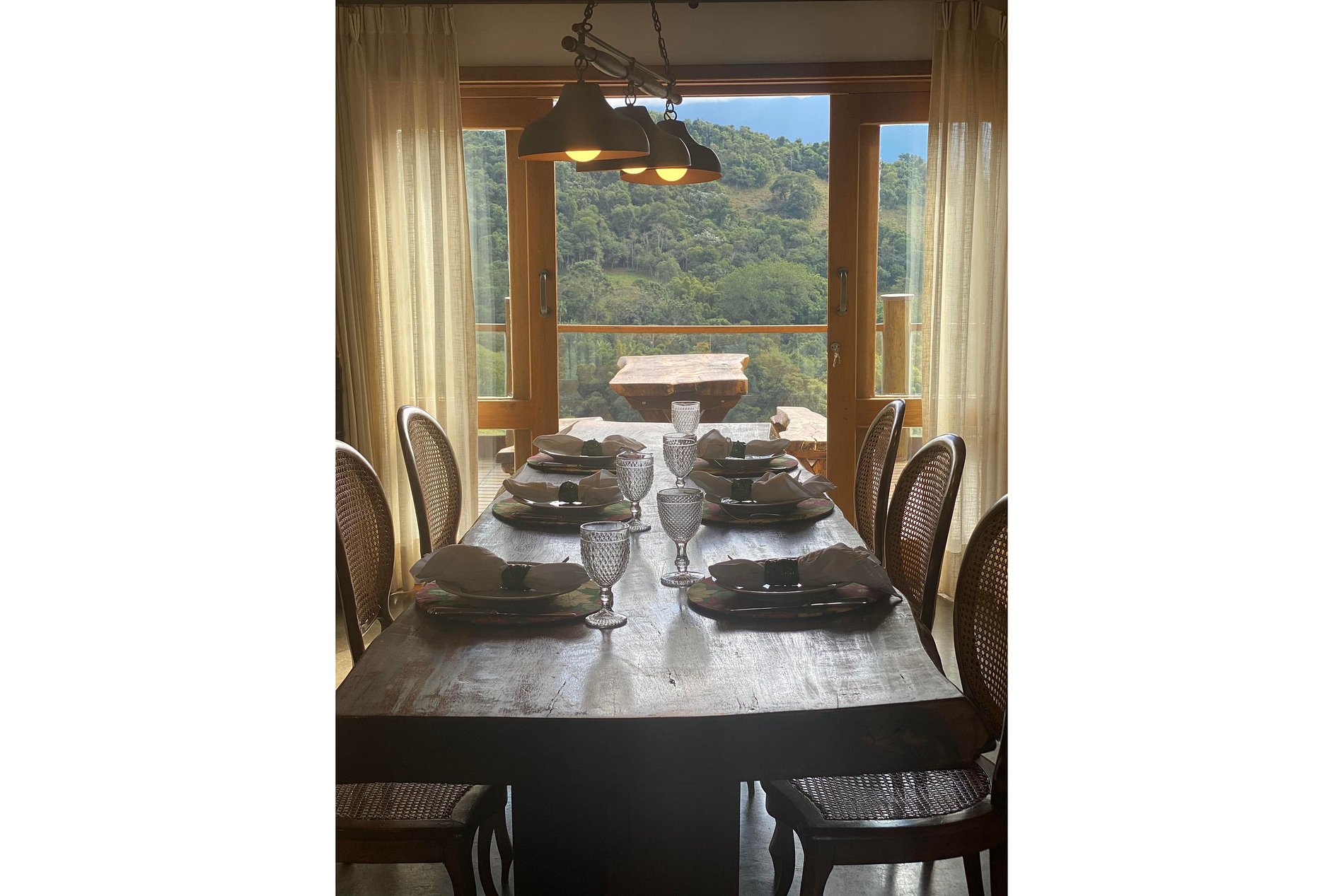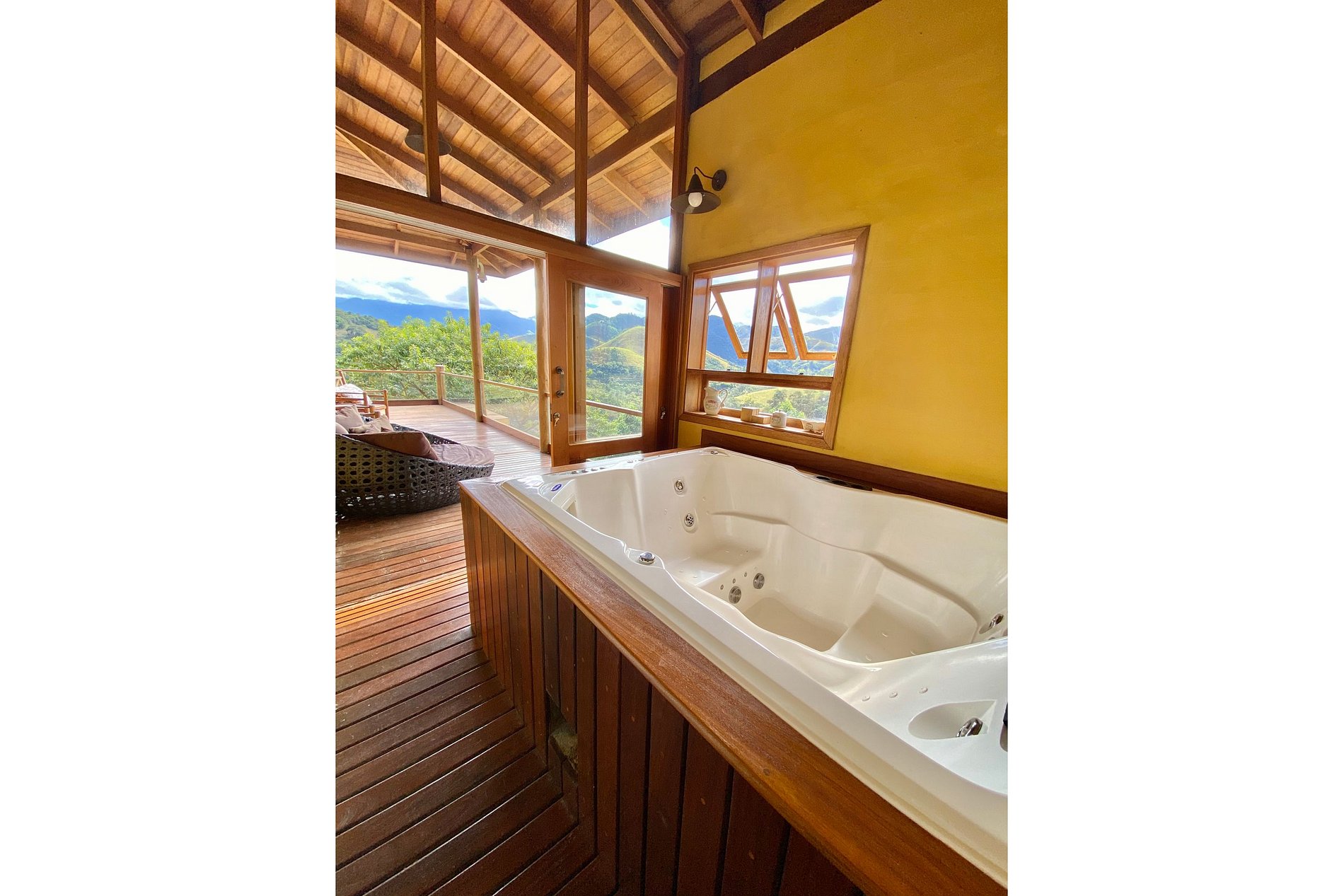 Acomoda confortavelmente 16 pessoas e dispõe também de câmeras de segurança na área externa, piscina com borda infinita e raia de 20m, fogo de chão, bangalô gourmet com vista deslumbrante e equipado com mesa de jantar, sofás, churrasqueira estilo Parrilla e panela de fondue; parque infantil com balanço, ponte e escorregador, pula pula, área no rio para picnic com mesa, permacultura, agrofloresta e horta orgânica, estacionamento amplo, Wi-Fi, TV a cabo Sky, aquecedor a gás e ar condicionado e/ou calefação.